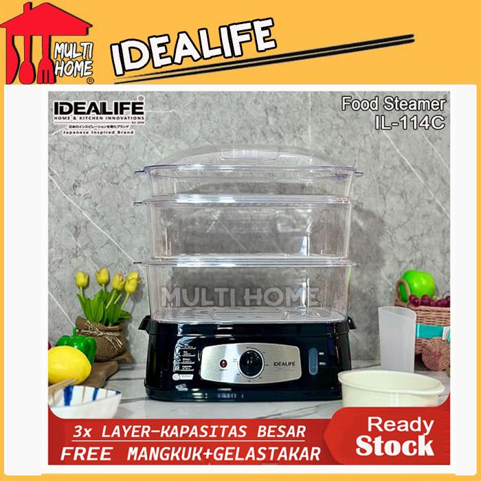 FOOD STEAMER IDEALIFE - PENGKUKUS MAKANAN IL114C / IL-114C KAPASITAS BESAR 25L (3 LAYER)