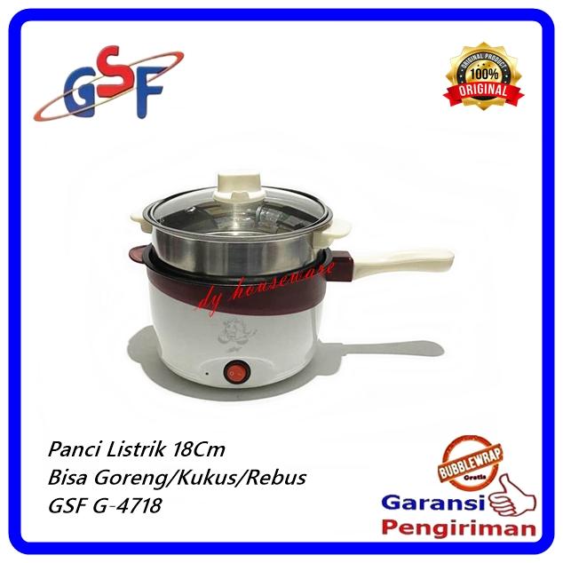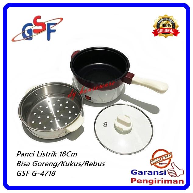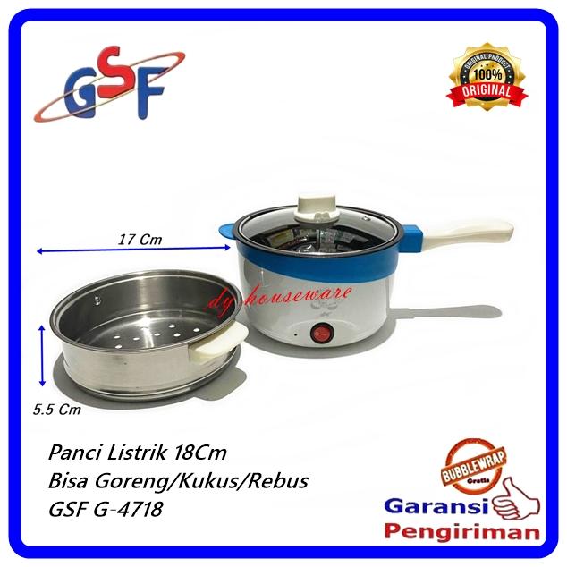 PANCI LISTRIK KUKUS GORENG REBUS ALAT MASAK ELEKTRIK TUTUP KACA TEFLON ANTI LENGKET 18 CM GSF G-4718 - BIRU MUDA
