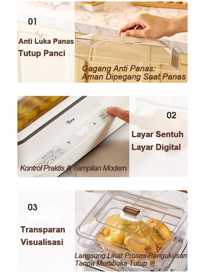 【DISKON WAKTU TERBATAS】TIXX ELECTRIC STEAMER KUKUSAN LISTRIK 18L ELECTRIC COOKER 3 LAPIS HOTPOT STEAMER LISTRIK MULTIFUNGSI GARANSI 5 TAHUN DIBUAT DI JEPANG - TIGA LAPIS--30L