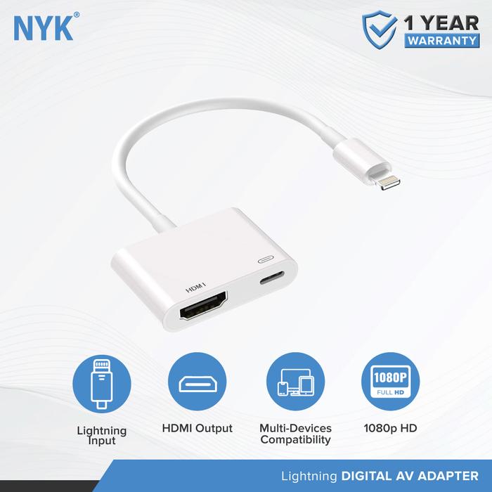 CONVERTER NYK LIGHTNING TO LIGHTNING + PORT HDMI SUPPORT APPLE IPHONE MACBOOK IPAD IMAC