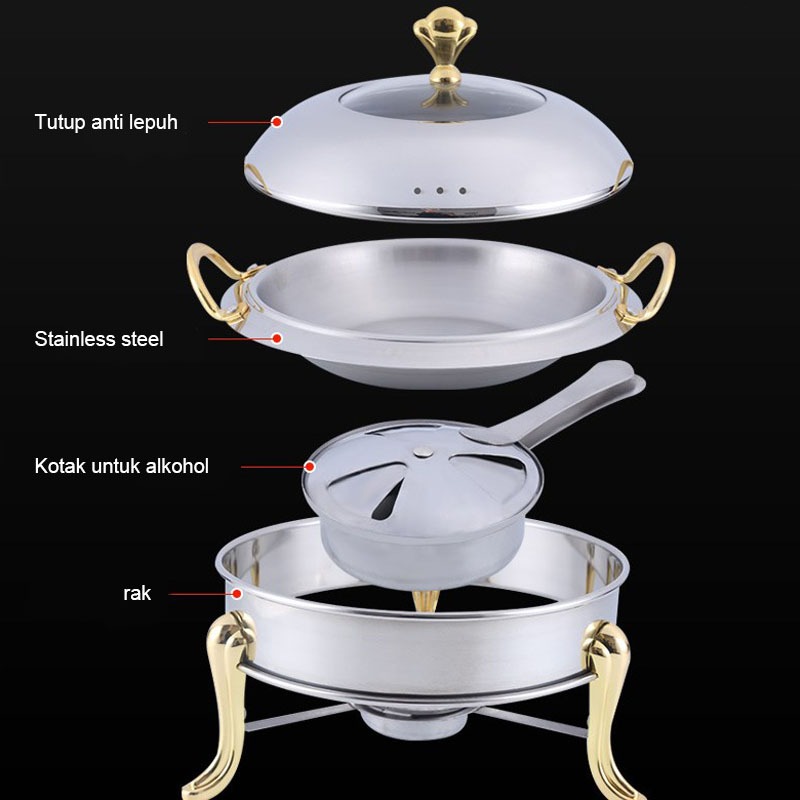 Chafing Dish 28cm Panci Prasmanan Bulat Stainless Steel bagus