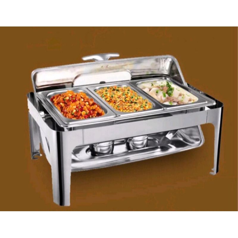 Roll top segi wadah saji prasmanan chafer chafing dish roltop sekat dua stainless steel