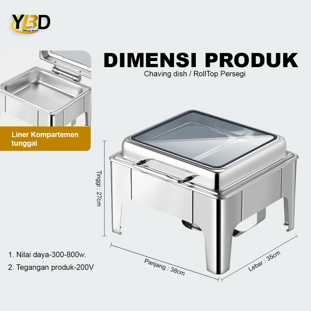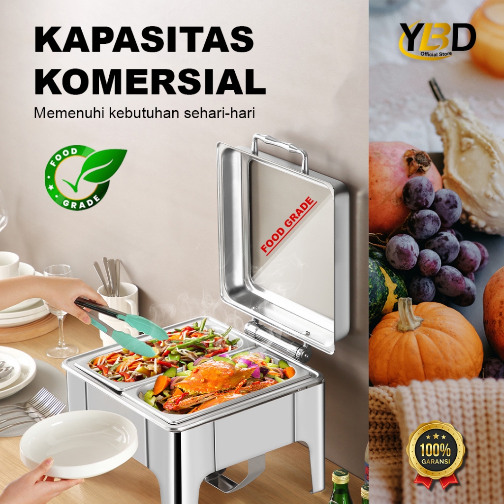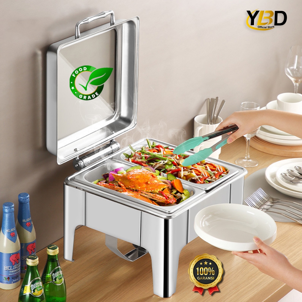 Roll top prasmanan 6 Liter | Chafing dish segi kecil kaca | tempat penyimpanan makanan prasmanan