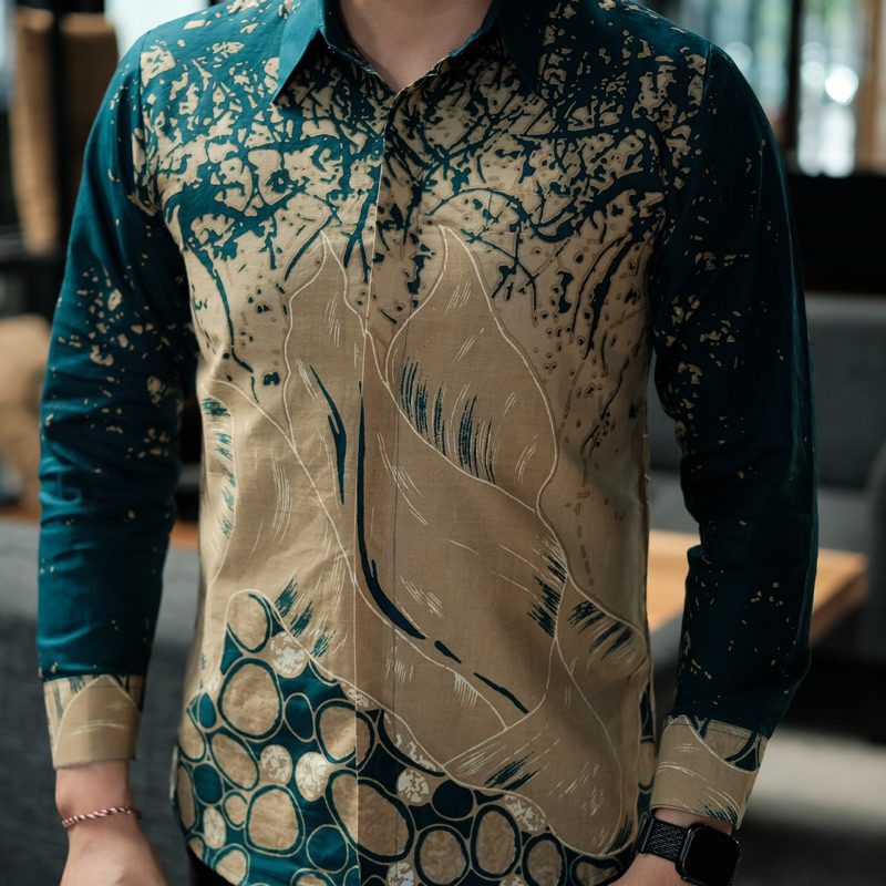 KUSUMA HIJAU Kemeja batik pria lengan panjang furing full katun SLIMFIT