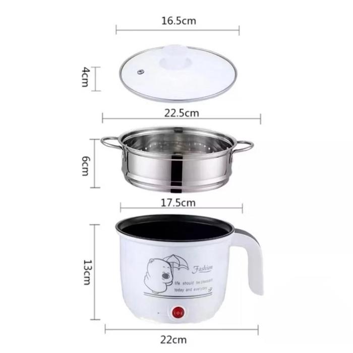 PANCI LISTRIK ELEKTRIK KUKUSAN STEAMER MULTIFUNGSI SERBAGUNA ANTI LENGKET AIR KABEL FOOD GRADE 1.6L 450W UNTUK GORENG KUKUS REBUS HOT POT RICE COOKER - DENGAN KUKUSAN