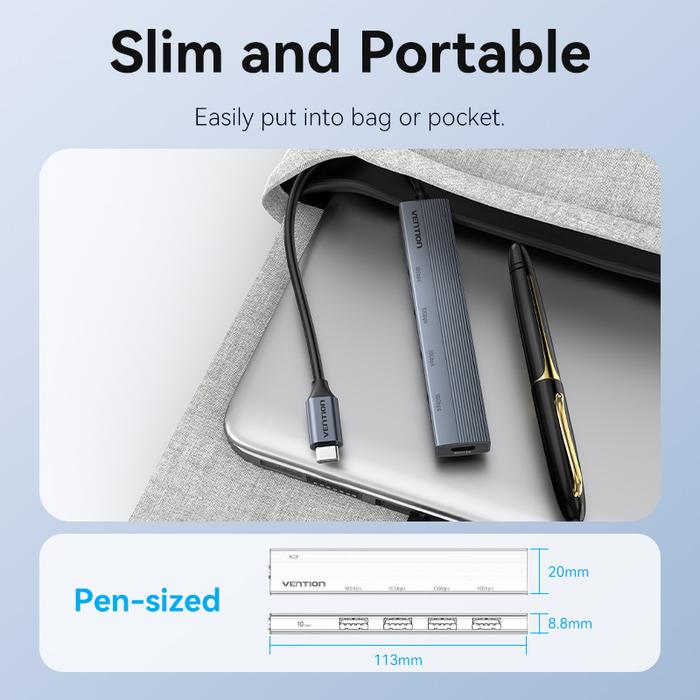 VENTION 5IN1 USB TYPE C 3.2 GEN 2 MINI HUB 4 PORT HIGH SPEED POWER OTG - CKH, 0.15 METER