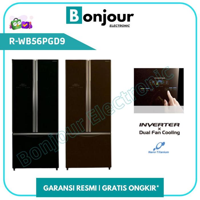KULKAS HITACHI FREEZER BAWAH 3 PINTU R WB56PGD9 GBK HITACHI R WB56PGD9