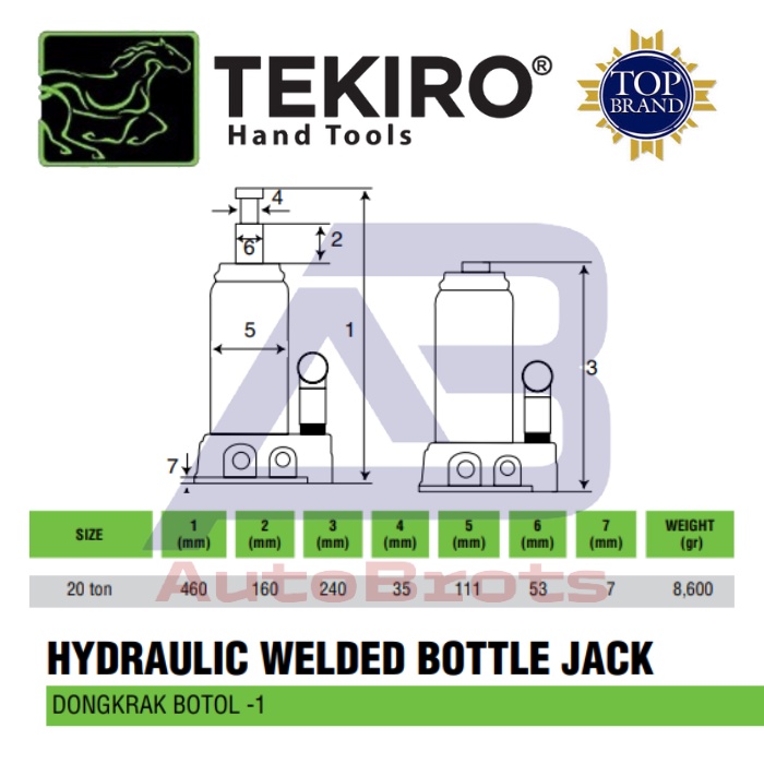 TEKIRO Dongkrak Botol 20 TON / Hydraulic Bottle Jack
