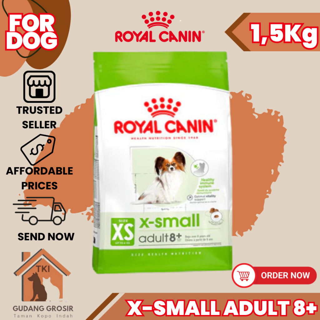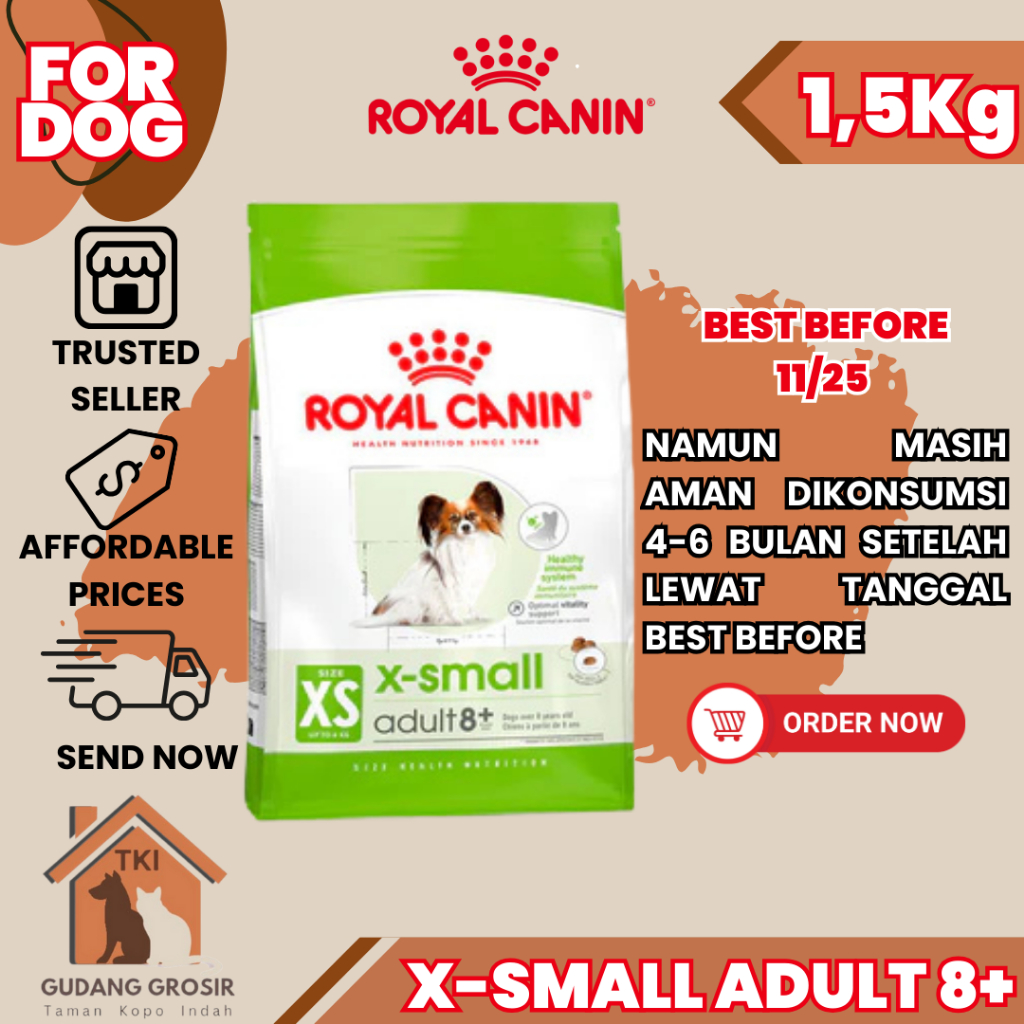 BEST BEFORE NOV 2025 Royal Canin X-Small ADULT 8+ 1.5kg - Dry Makanan Anjing Dewasa - RC DOG
