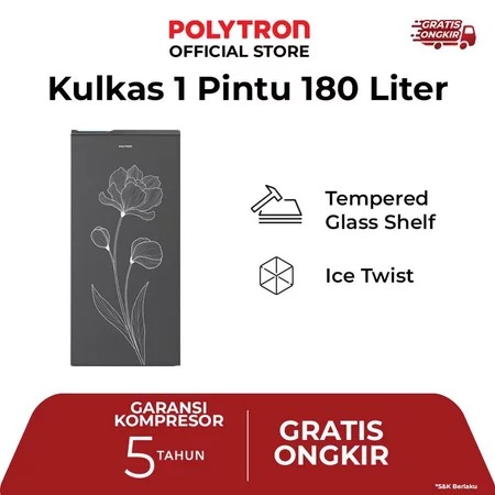 Kulkas - kulkas 1 pintu - POLYTRON Kulkas 1 Pintu Metallic 180 Liter PRB 187PR/187LB/ PRB 187TY
