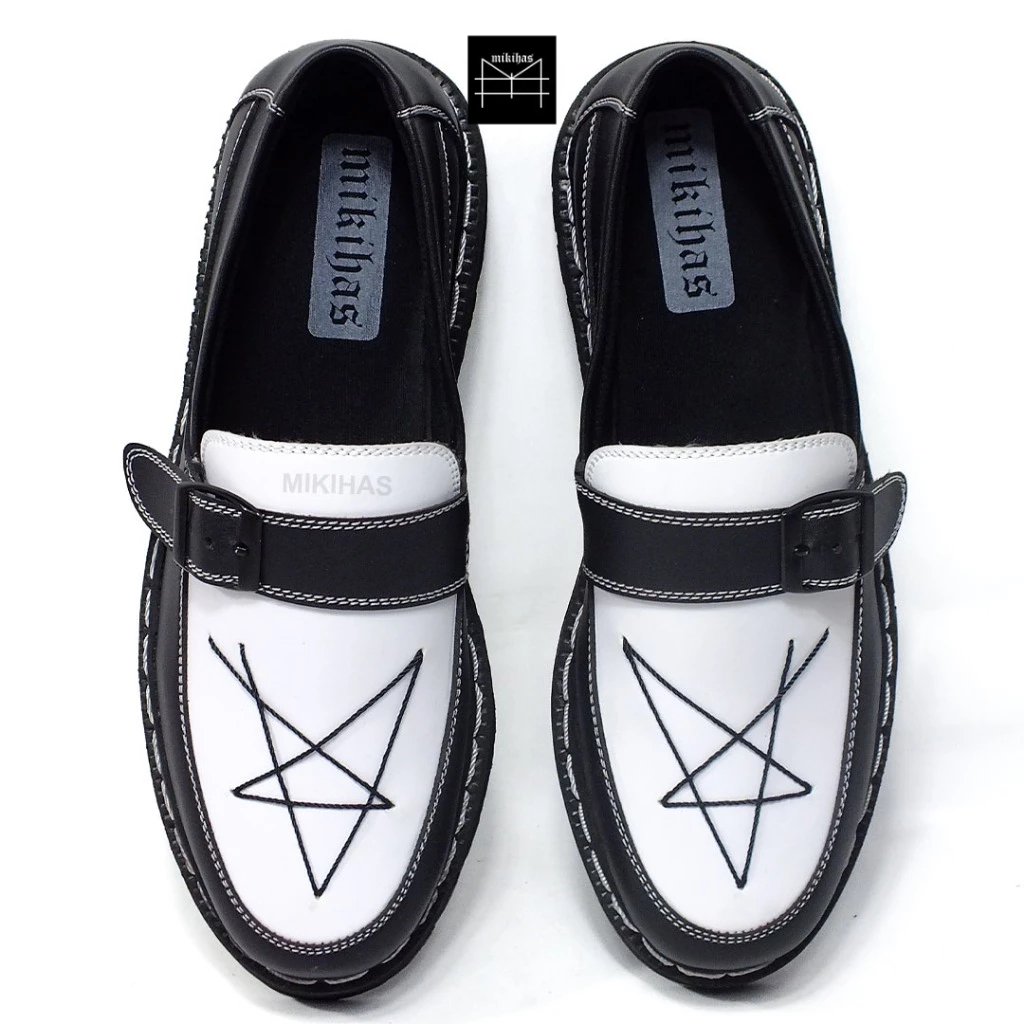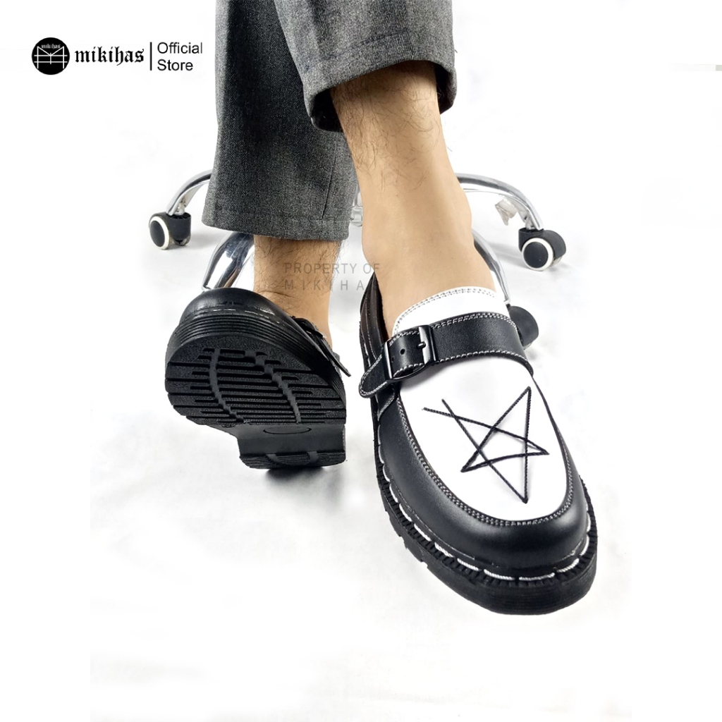 [Star] Mikihas - Sepatu Loafers Pria Kasual Kulit Hitam Putih Bintang Slip On - R7 Star