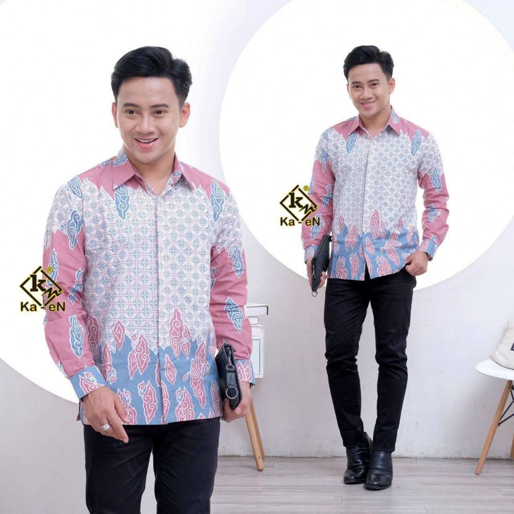 BAJU BATIK PRIA KEMEJA LENGAN PANJANG SIZE M L XL XXL | BATIK DUSTY PINK