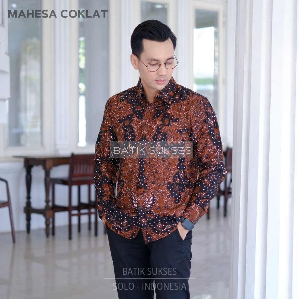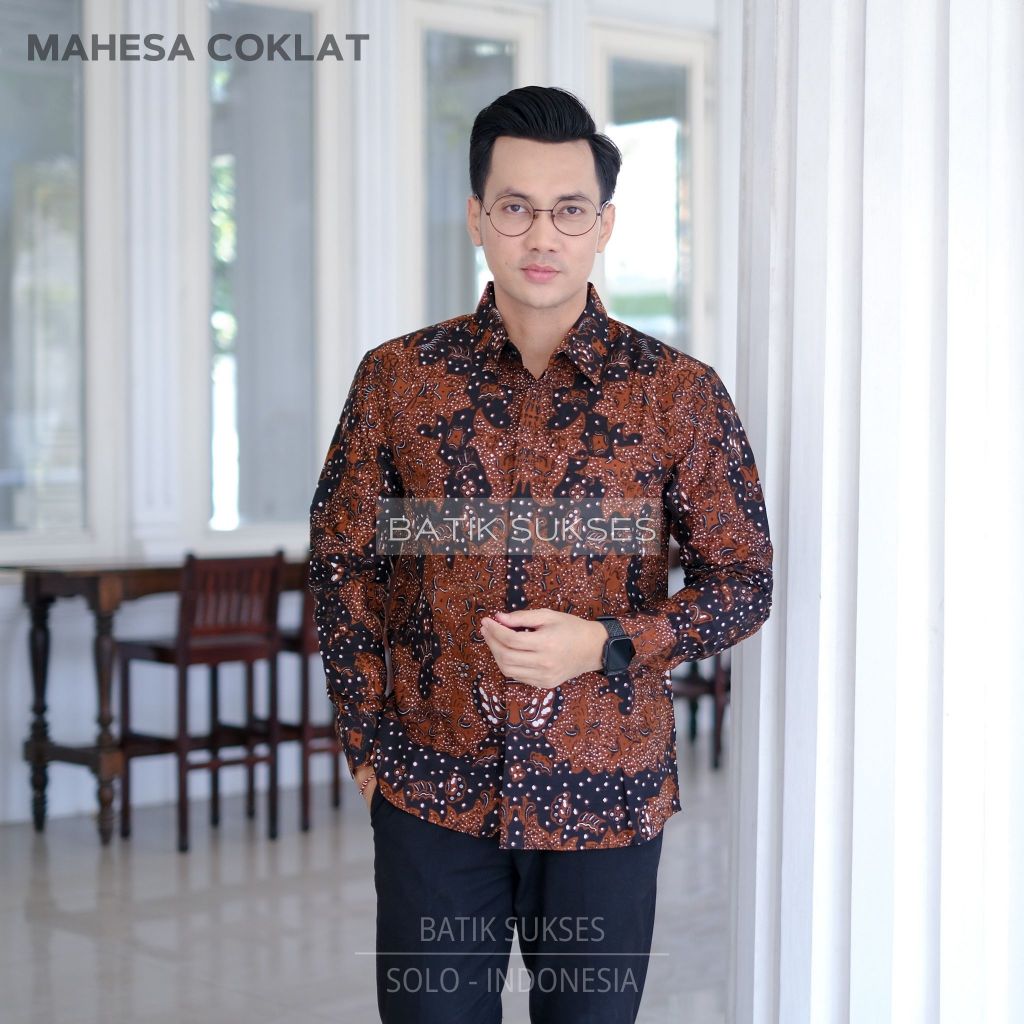 MAHESA Kemeja Batik Solo Pria Lengan Panjang Katun Halus FULL FURING Batik Ori Solo Premium