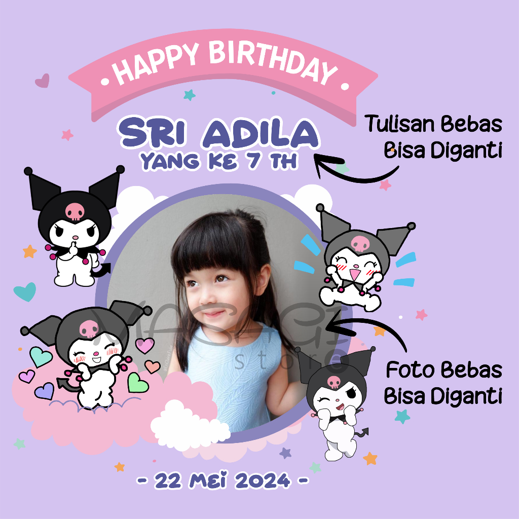 Kaos Ulang Tahun Couple Keluarga Motif Kuromi Gratis Cetak Foto & Nama Sendiri