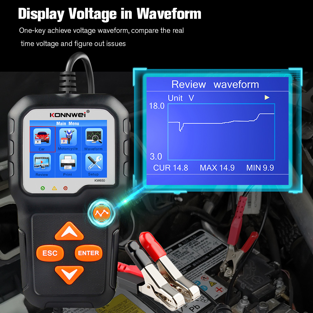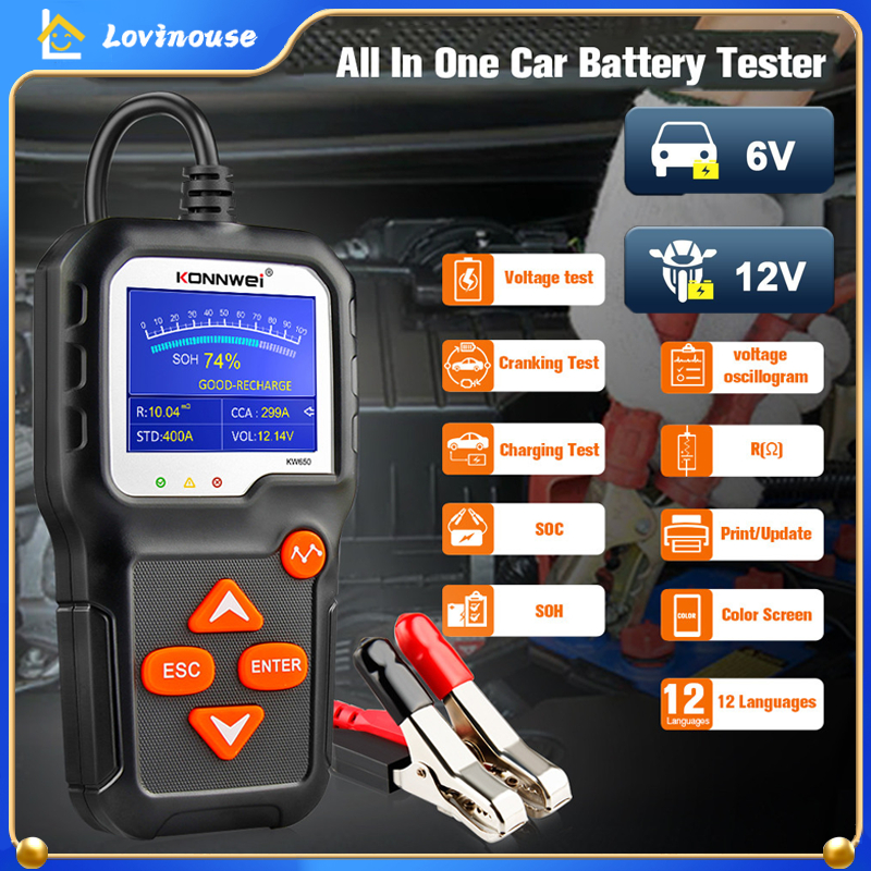 KONNWEI KW650 6V 12V Mobil Motor Baterai Tester 100 to 2000 CCA Digital Baterai Analyzer Nama