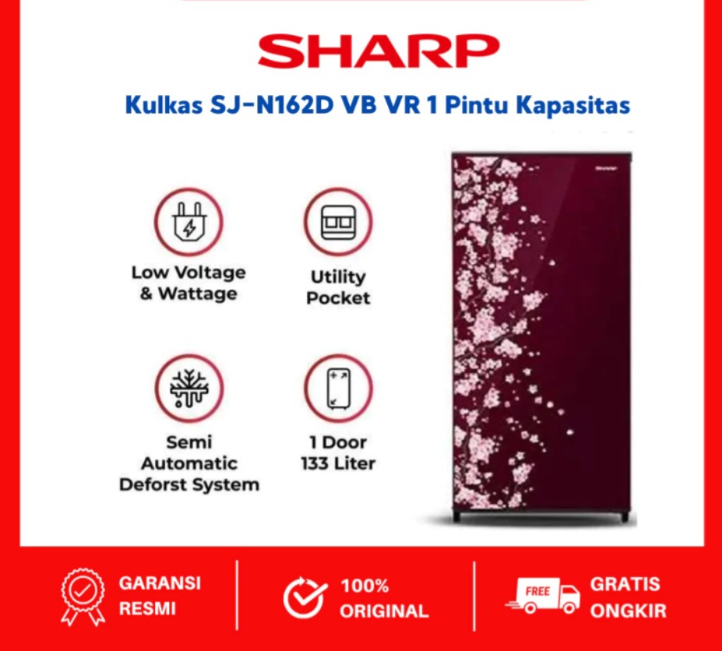 Kulkas - kulkas sharp - Sharp Kulkas SJ-N162D VB VR 1 Pintu Kapasitas 128 Liter Hemat Listrik Garansi Resmi