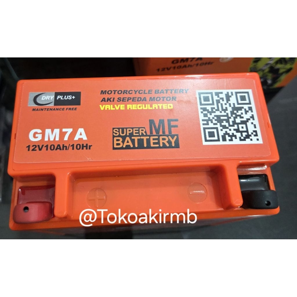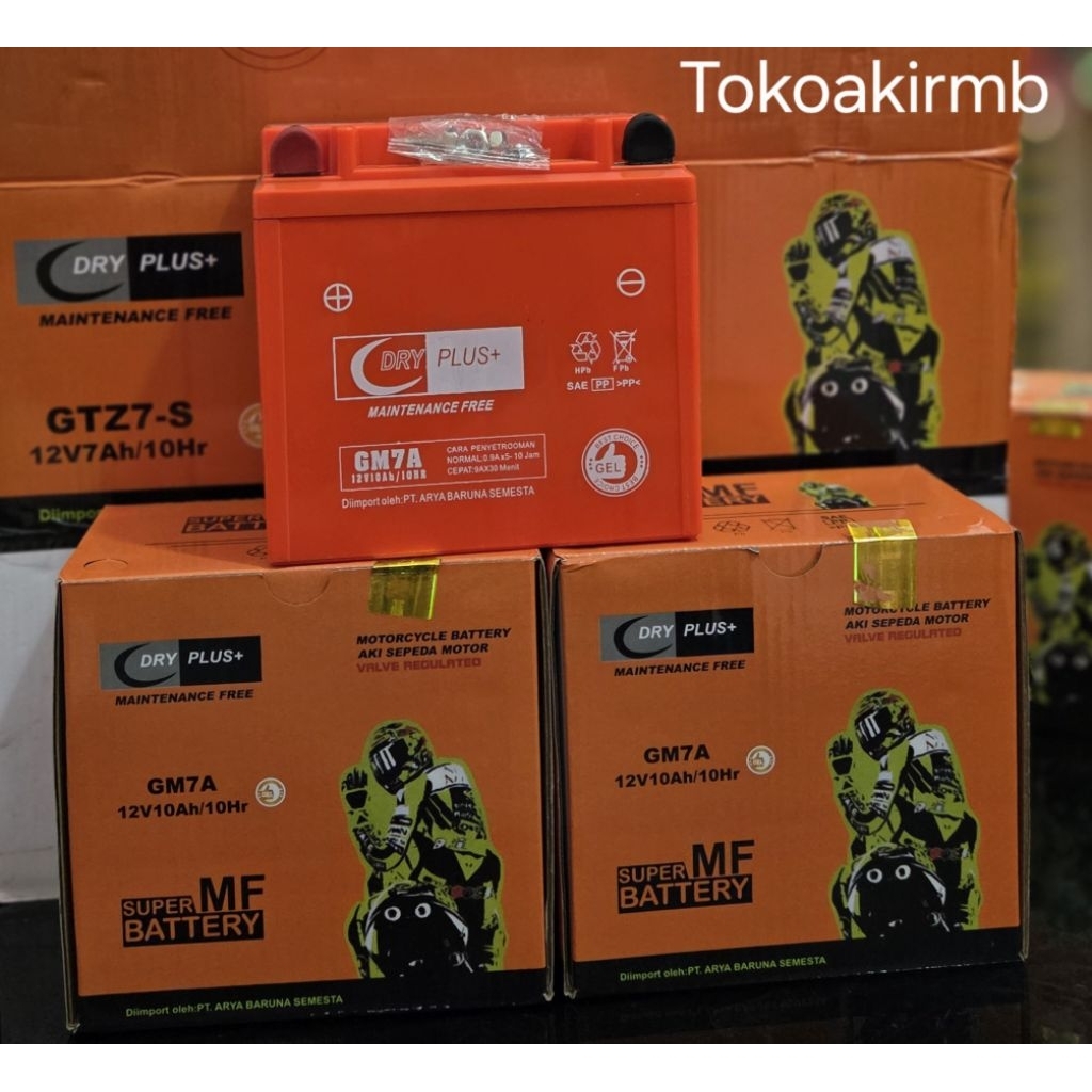 Aki THUNDER,GM7A,DRYPLUS, (12V/10 ah),berat(2,5kg),P×L×T(137,513'5),untuk motor THUNDER,125,250CV
