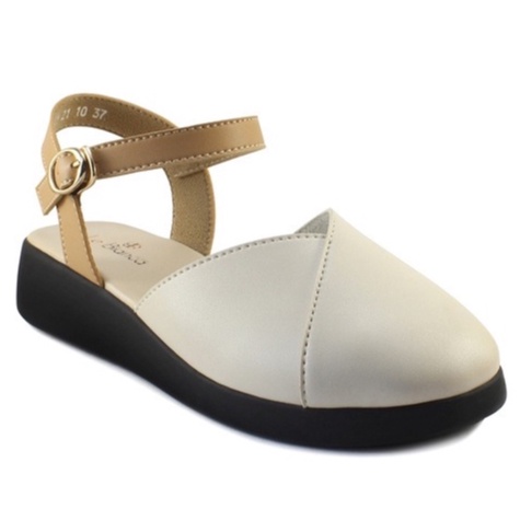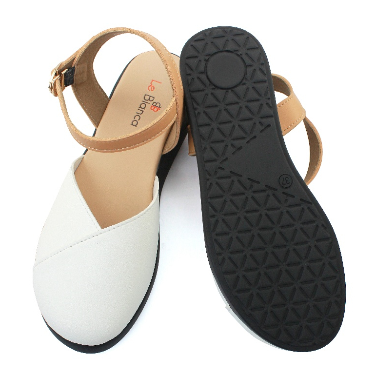 [Star] Le Bianca Aly 21-10 Sepatu Sendal Wanita Bustong Flat Sandal Hitam Coklat Putih Kulit Sintetis