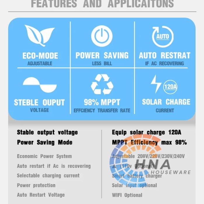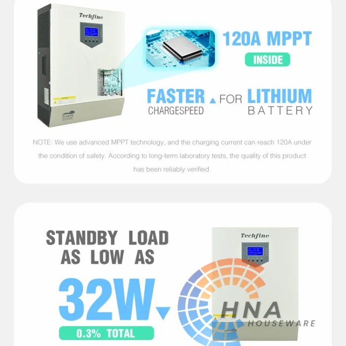 Inverter Techfine 6300VA 5000 Watt 12V Hybrit Trafo Low Frequency Dengan SCC MPPT 120A Bisa Di Fungsikan Sebagai UPS