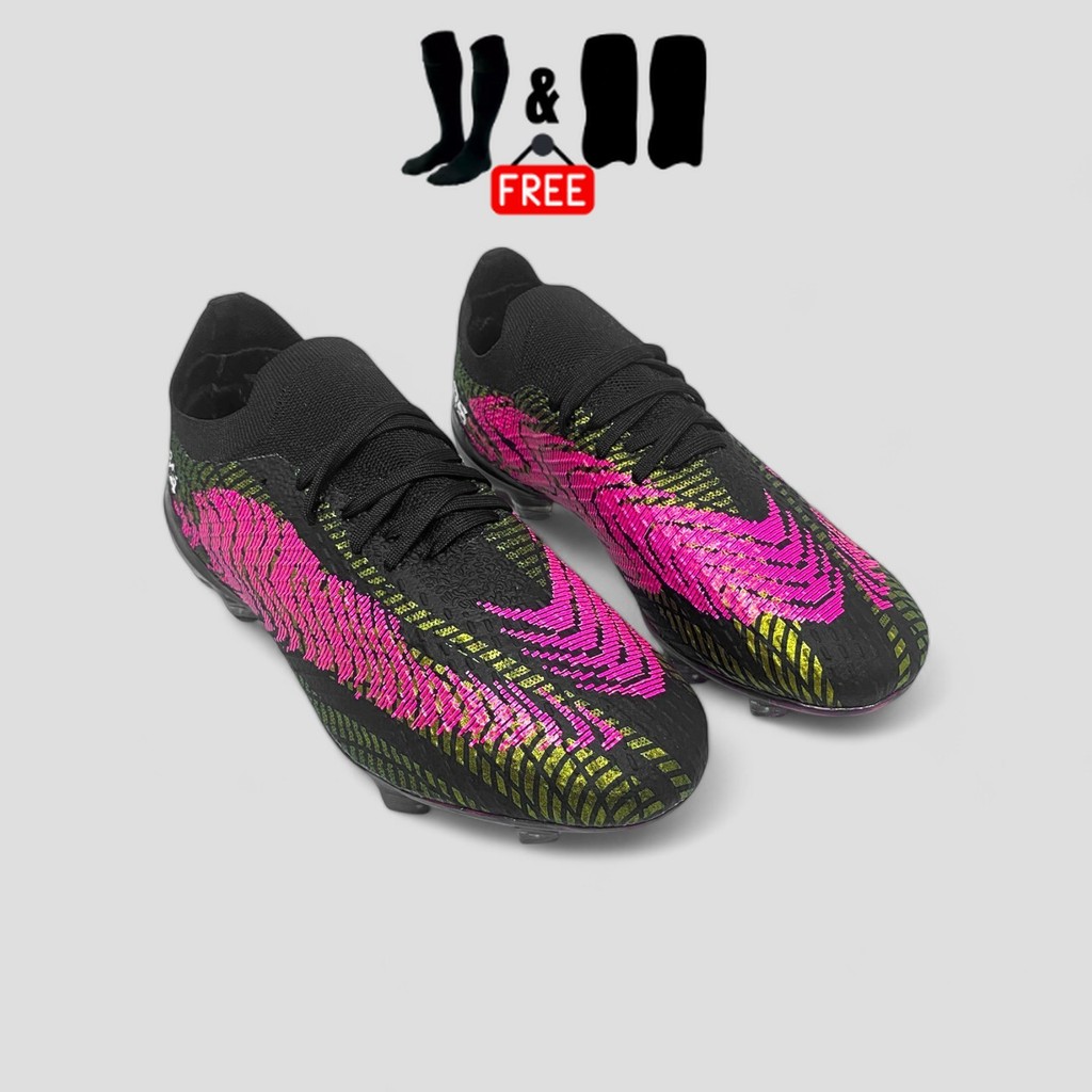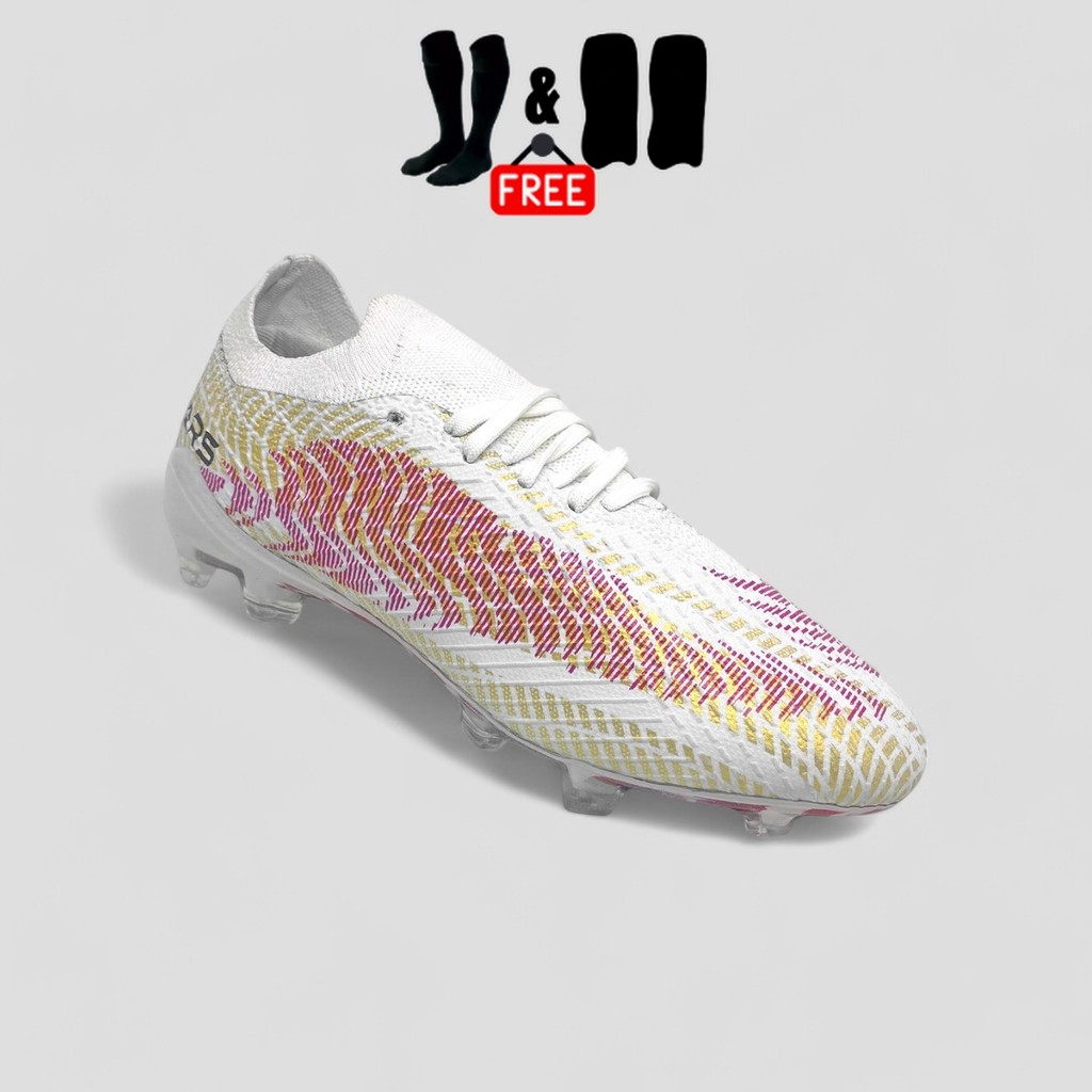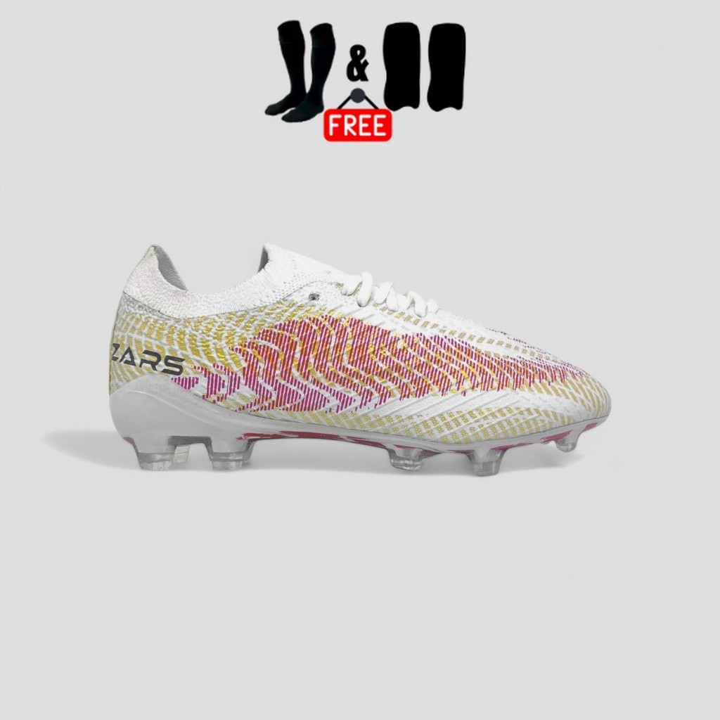 Zars - Sepatu Sepakbola Original Nova Devianz White kuningan mengkilap Magenta FG reacto boots lentur berkualitas bonus kaos kaki deker bisa