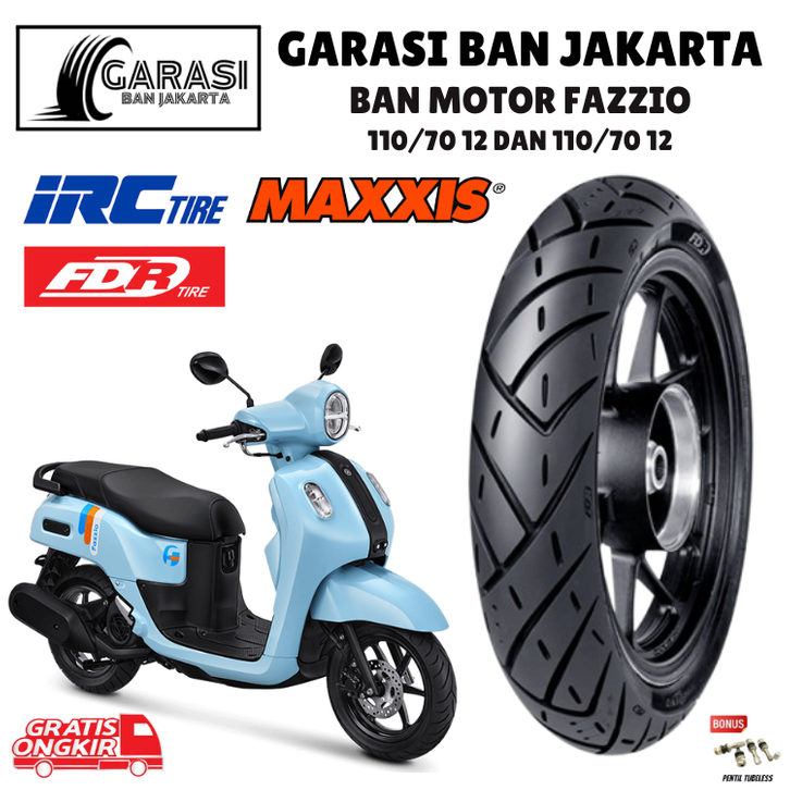 BAN MOTOR FAZZIO TUBELESS RING 12 SEPASANG DEPAN BELAKANG DONAT IRC MAXXIS FDR ASPIRA ORIGINAL TANPA DP FREE PENTIL