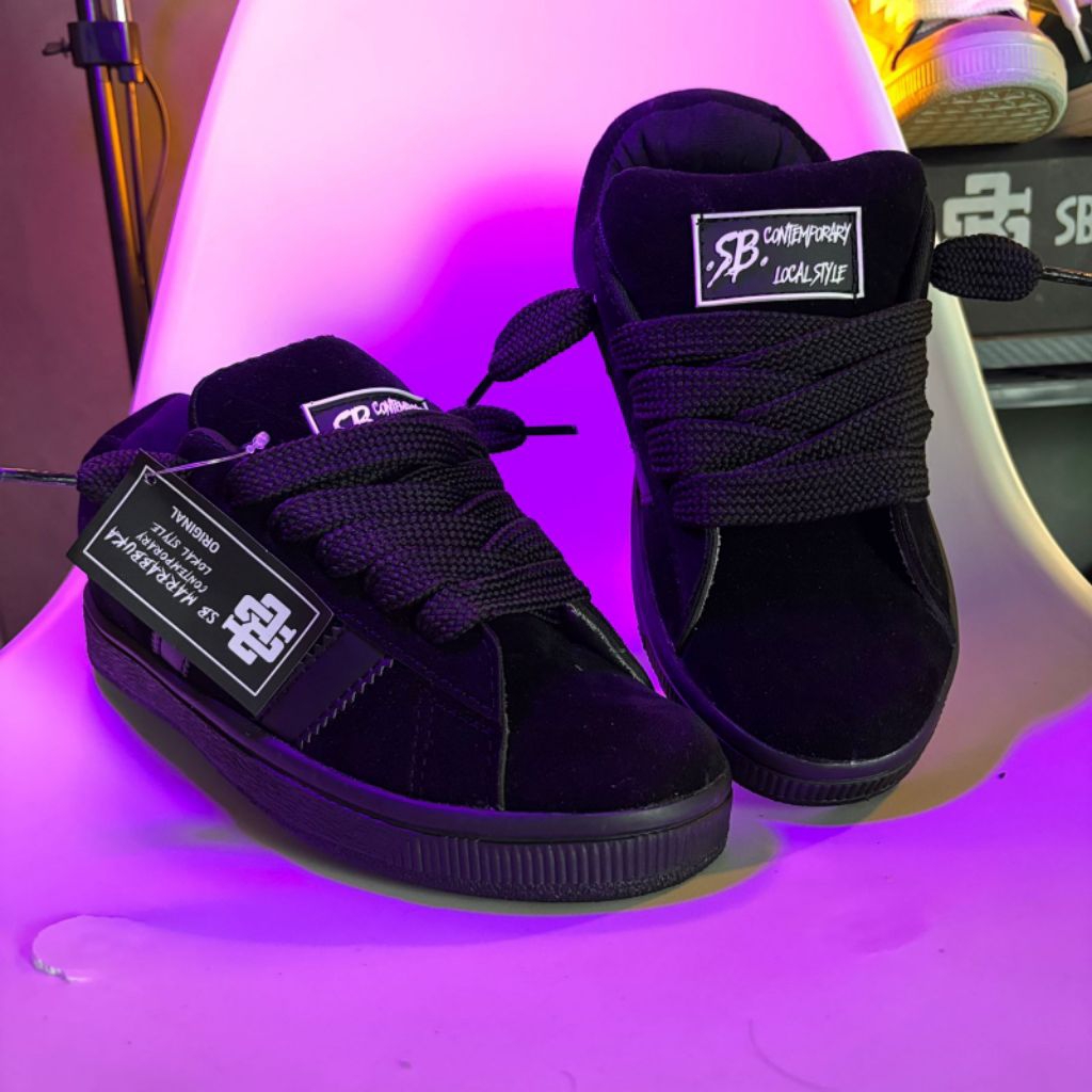 ORIGINAL Sepatu Tali Gemuk Gendut SB MARRABBUKA SUEDE Untuk Dewasa remaja anak Sekolah santai jalan Nongkrong model Skate Outfit Skena Sekena warna Full hitam