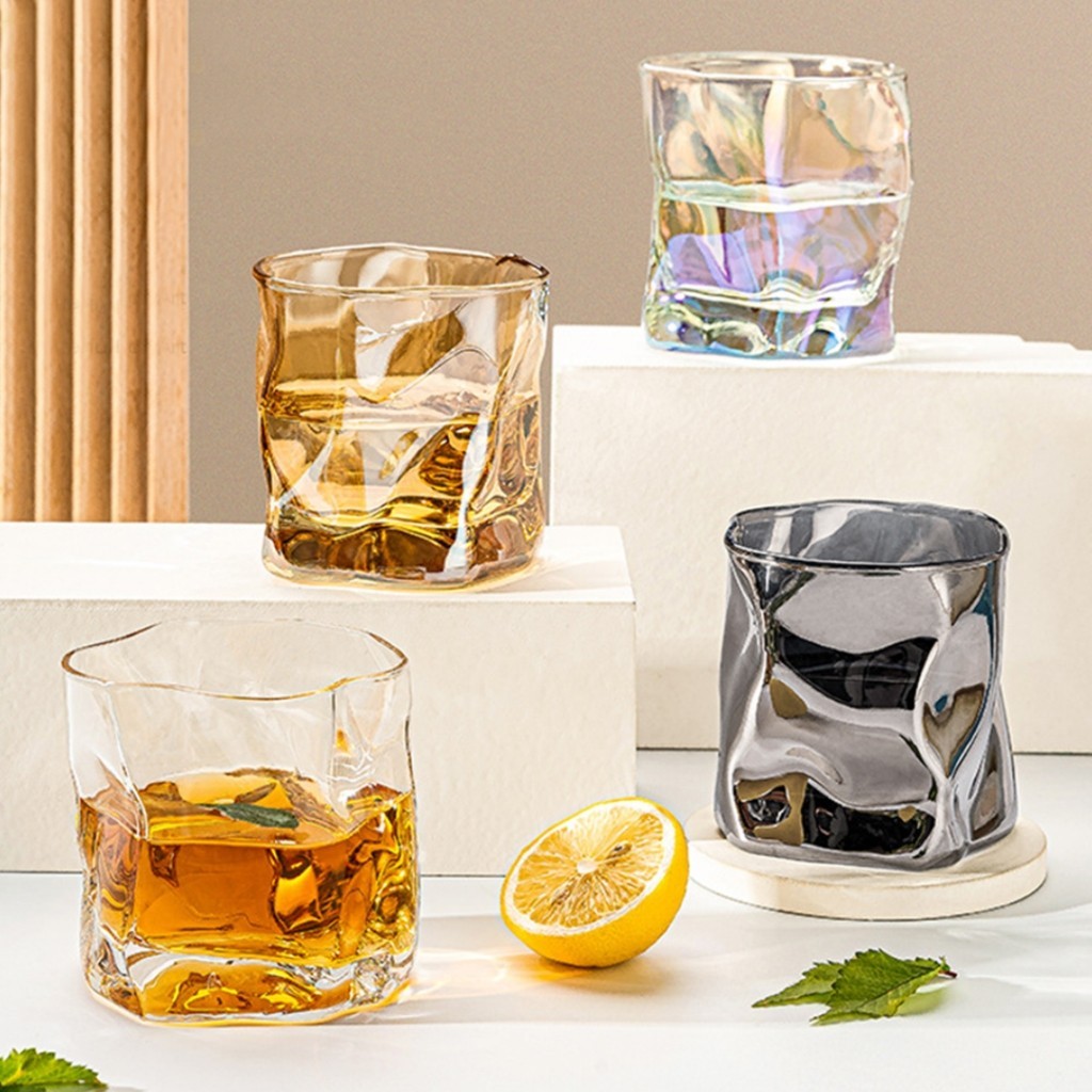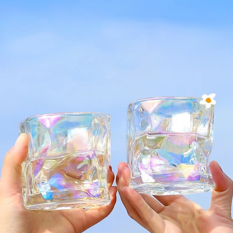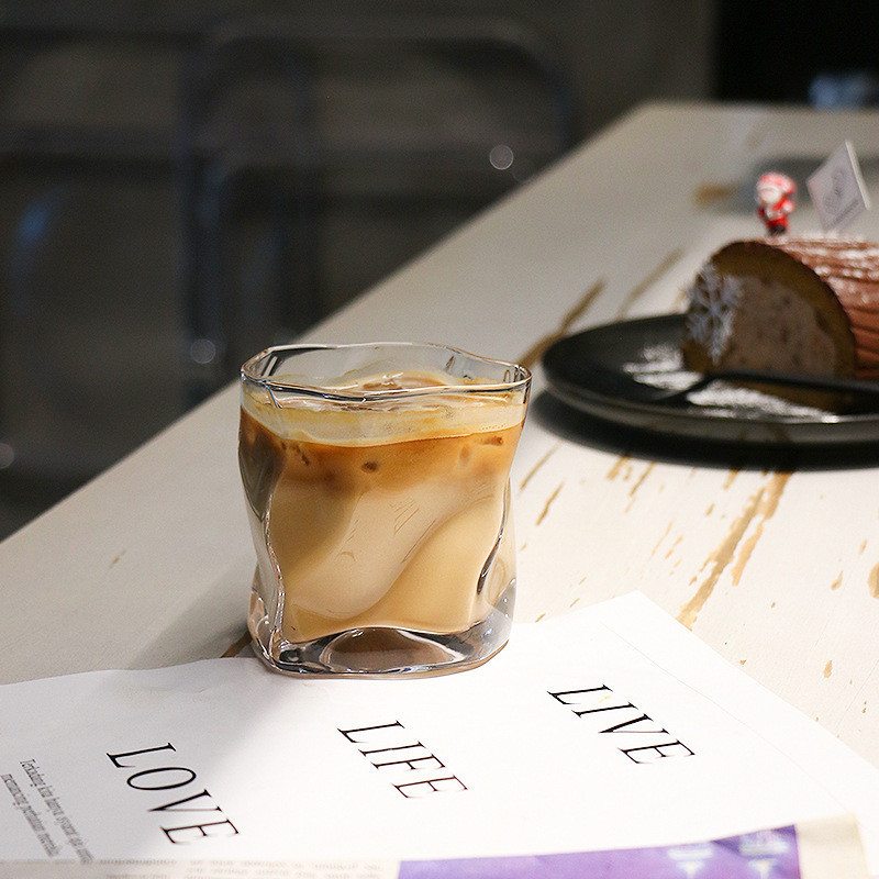 Gelas Kaca Aesthetic Gaya Jepang | Glass Single Rocks Abstract Glass Cup | Gelas Air Minum 180ML