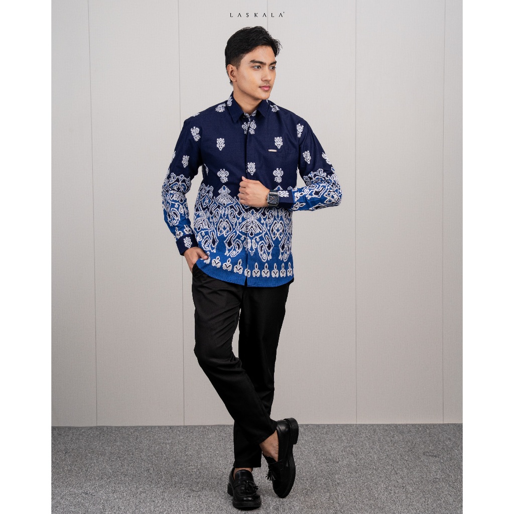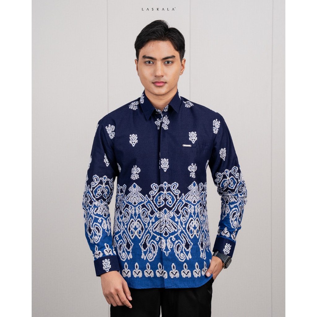 Laskala Batik Premium Waerebo Blue Kemeja Batik Pria Slimfit Lengan Panjang