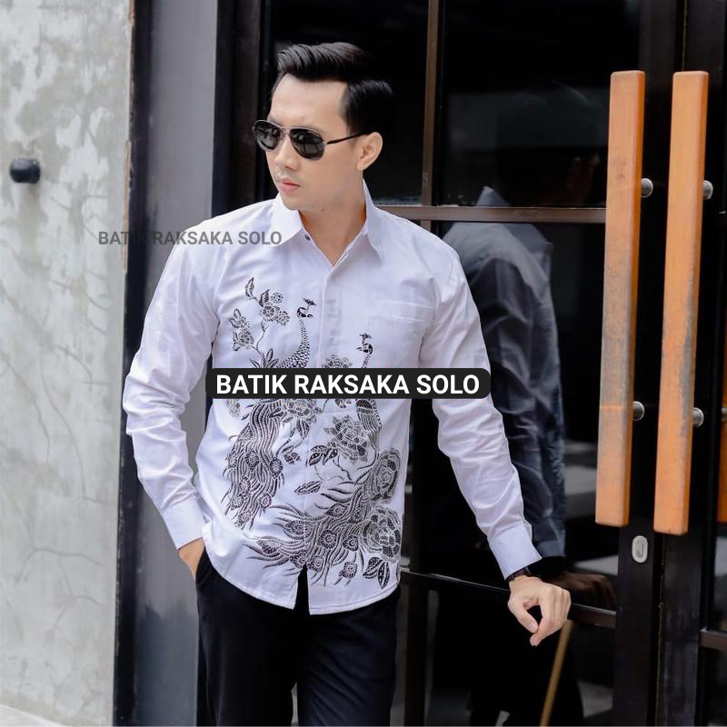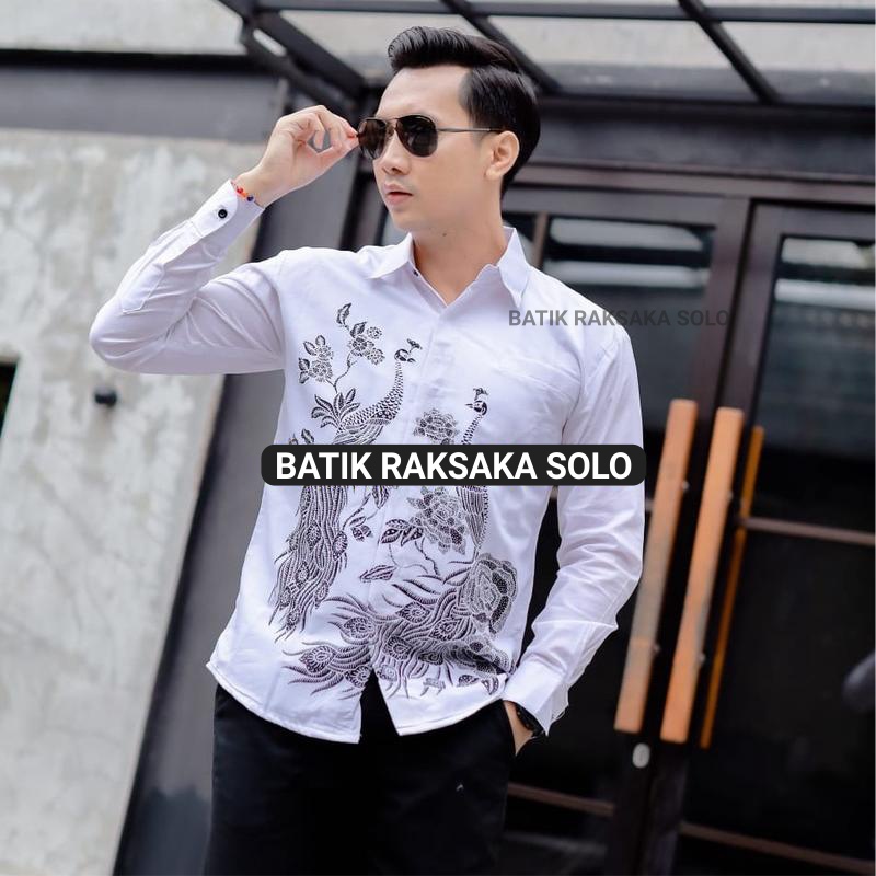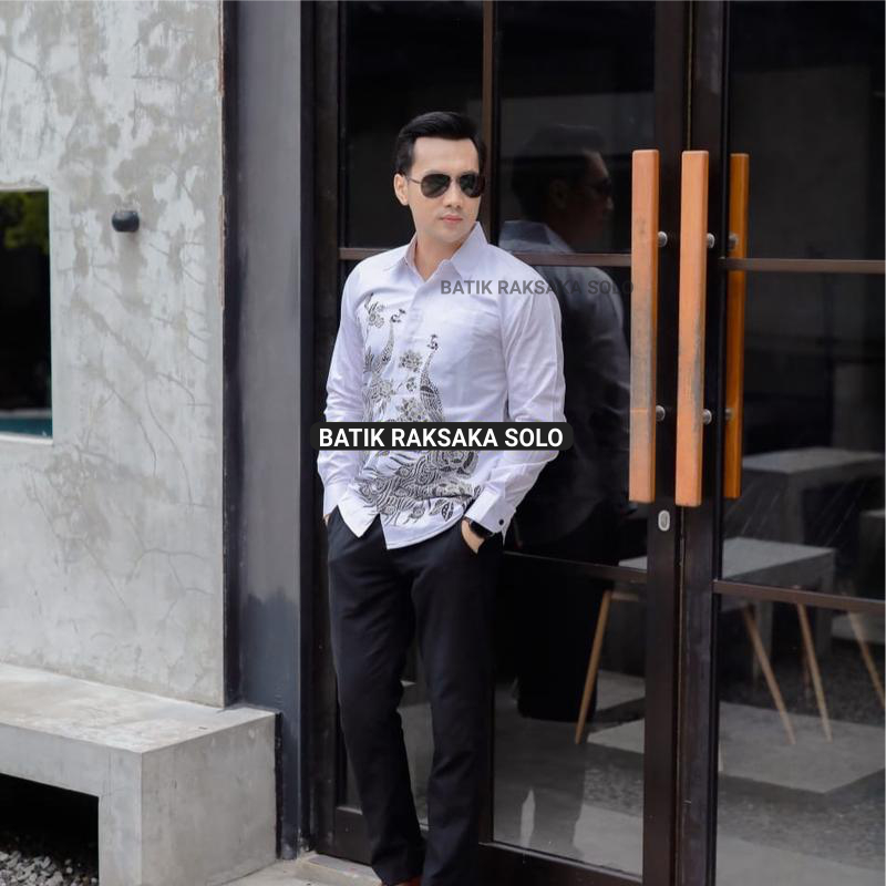 Kemeja Batik Pria Cowok Slimfit Premium Motif AZRIEL Full Furing Baju Lengan Panjang Warna Putih