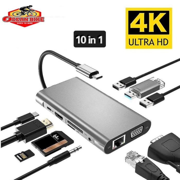 USB HUB CONVERTER HDTV TO TYPE C MACBOOK ADAPTER RJ45 10IN1 4K LAPTOP - 7 IN 1