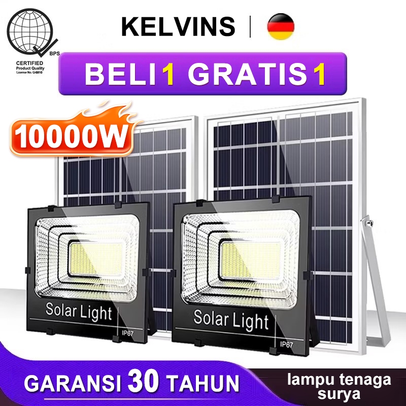 [Beli 1 Gatis 1] KELVINS Lampu tenaga surya outdoor 10000W lampu emergency tahan 24 jam led IP67 waterproof panel surya