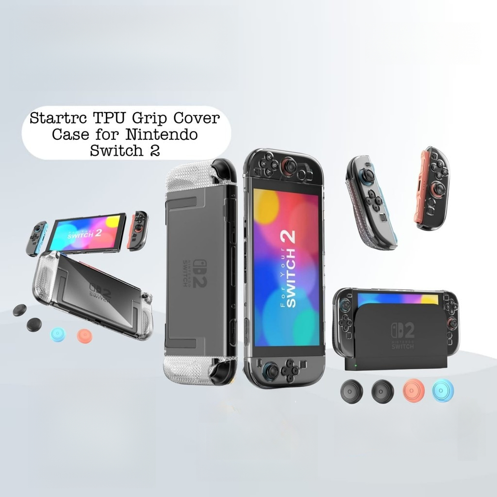 STARTRC Protective Clear Case for Nintendo Switch 2 with TPU Grip Cover Case and Thumb Caps Casing
