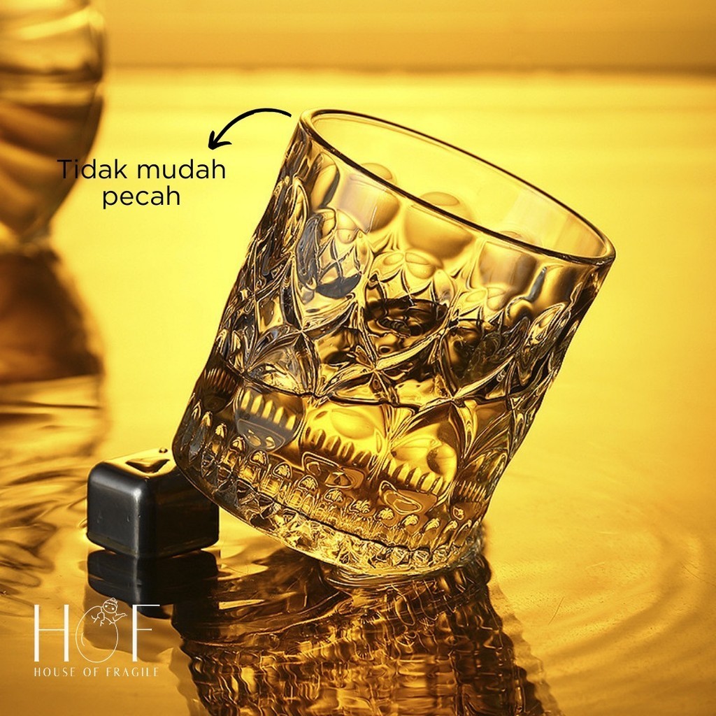 HOF] KUKI Gelas Whiskey Kaca - Aesthetic Whisky Bar Rock Glass Lowball Cafe Estetik Import Unik