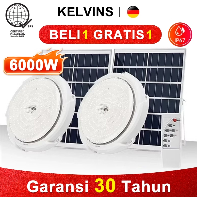 [Beli 1 Gatis 1] KELVINS Lampu plafon 6000W 3Warna lampu emergency tahan 24 jam IP67 Tahan air lampu tenaga surya lampu