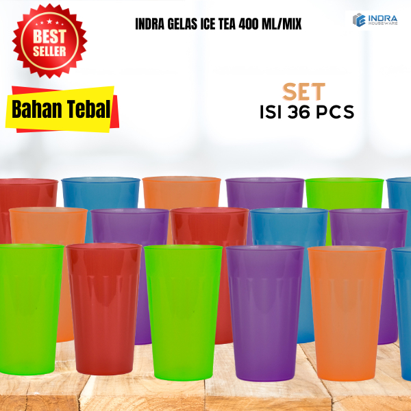 INDRA Paket Gelas Ice Tea 400ml/SET isi 36pcs/gelas plastik/cangkir