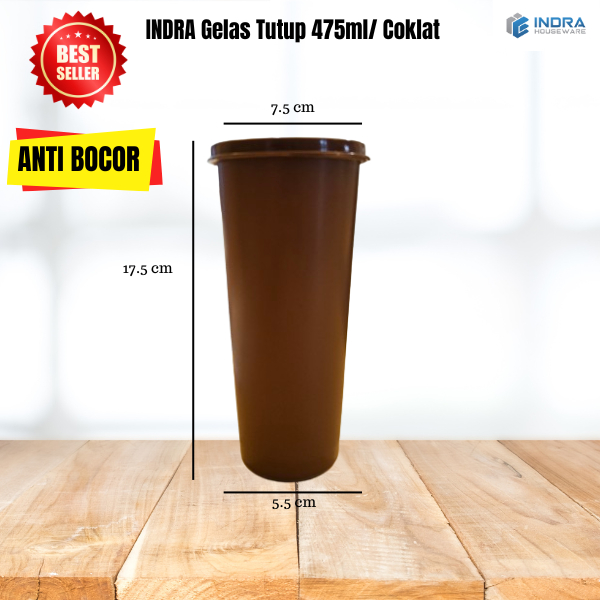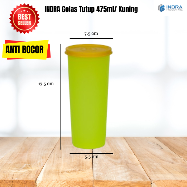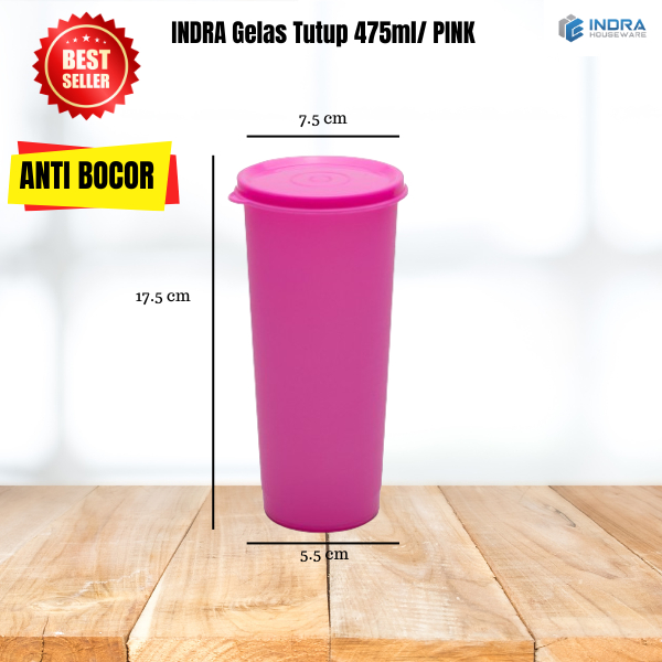 Tumbler Gelas Plastik 475 ml + Tutup – Indra Houseware • BPA Free • Tahan Panas & Dingin
