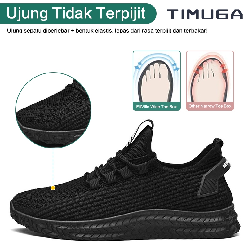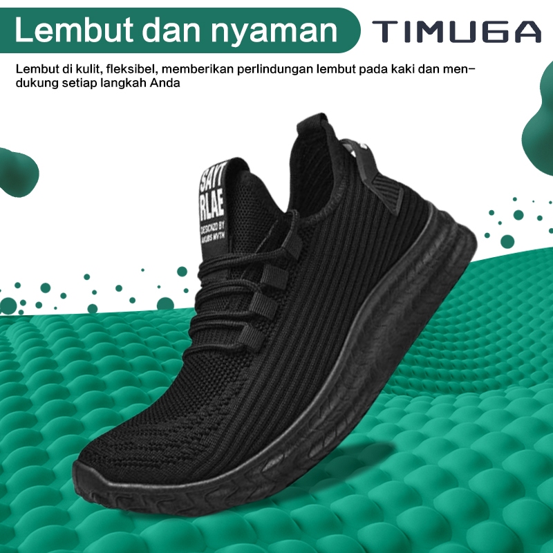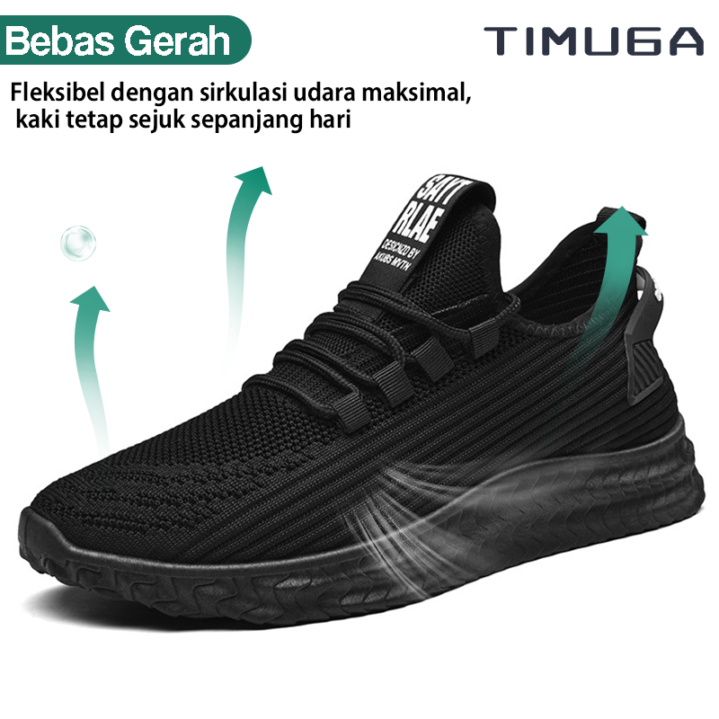 TIMUGA Sepatu Pria Hitam Polos Outdoor Sepatu Olahraga Cowok Lari Sekolah Kasual Sport Shoes MR109