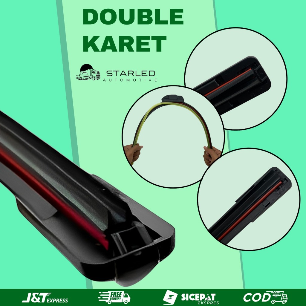 WIPER DUAL KARET WIPER DOUBLE KARET WIPER MOBIL FRAMELESS KARET GANDA UNTUK SEMUA JENIS MOBIL