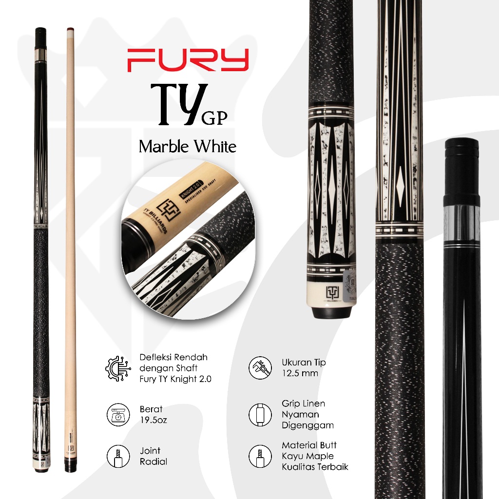 Fury TY Knight Series Maple Play Cue Stick Low Deflection Stik Billiard - Profesional Series