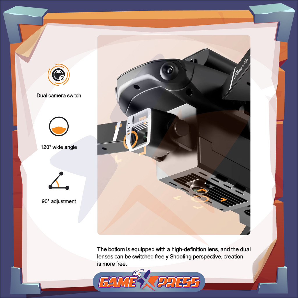 Drone E100 Sensor Anti Tabrak Dual Kamera Obstacle Avoidance Camera 4K UltraHD BERGARANSI RESMI - GameXpress