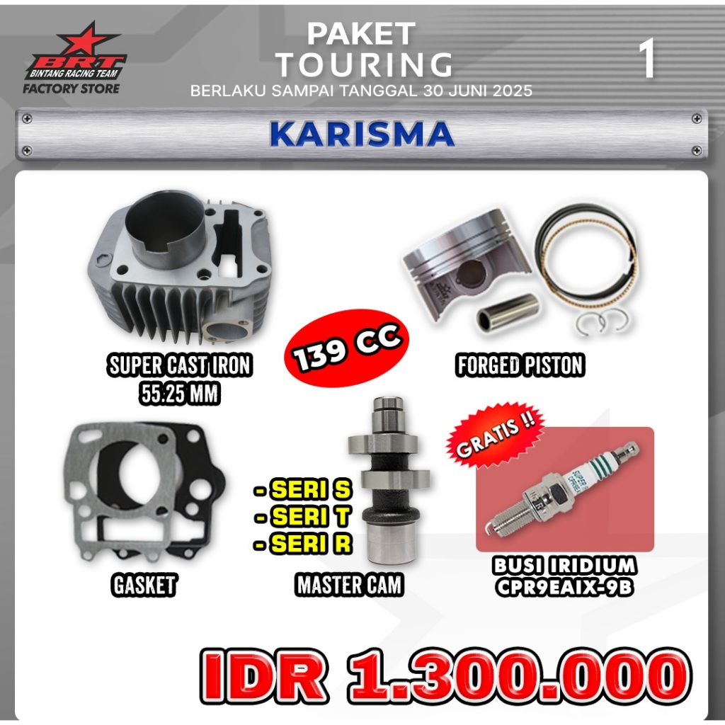 Paket Bore Up BRT 55,25mm Touring 1 Karisma Supra X 125 Kirana 139cc