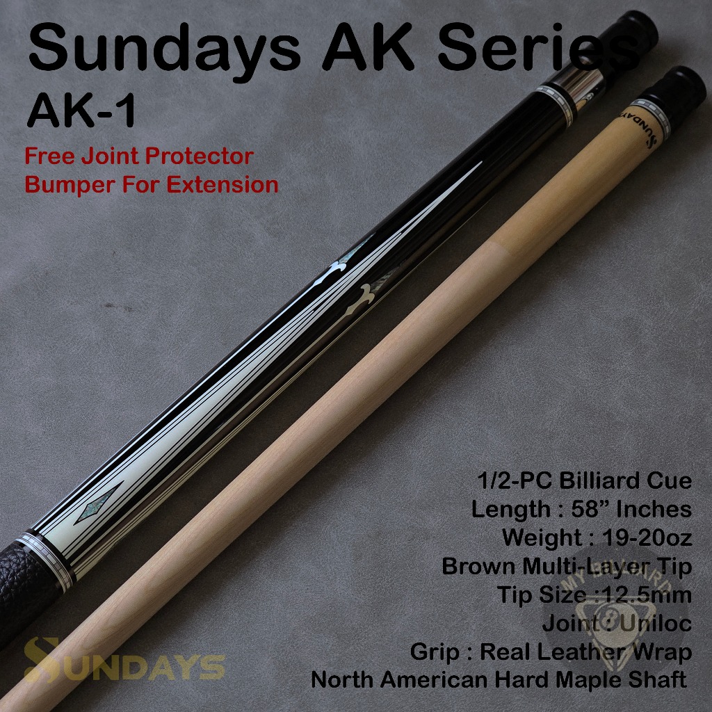 Stick Billiard Sundays AK-1 12.5mm Uniloc - Leather Grip - Stik Billiar Sundays AK 1 bukan Fury ak