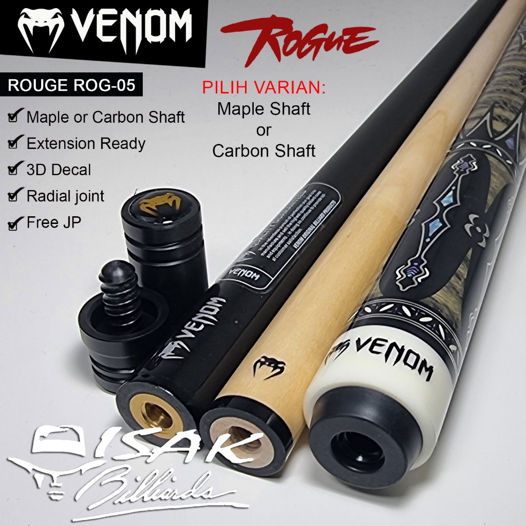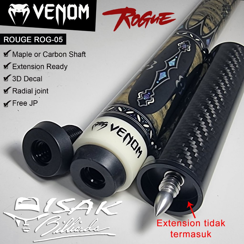 Venom Rogue ROG-05 Pool Cue - Radial Maple Carbon Ext Stick Billiard