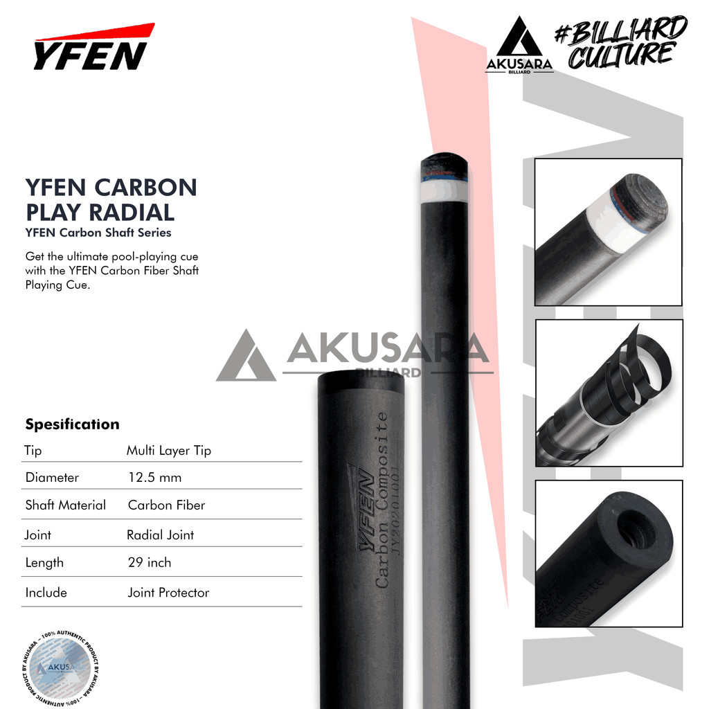 Yfen Shaft Only Play Carbon Cue Stik Billiard
