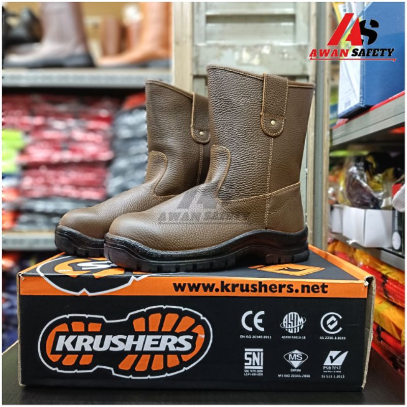 Sepatu Safety KRUSHERS TEXAS BROWN BLACK / Safty Boots Kerja Proyek KRUSHER Original