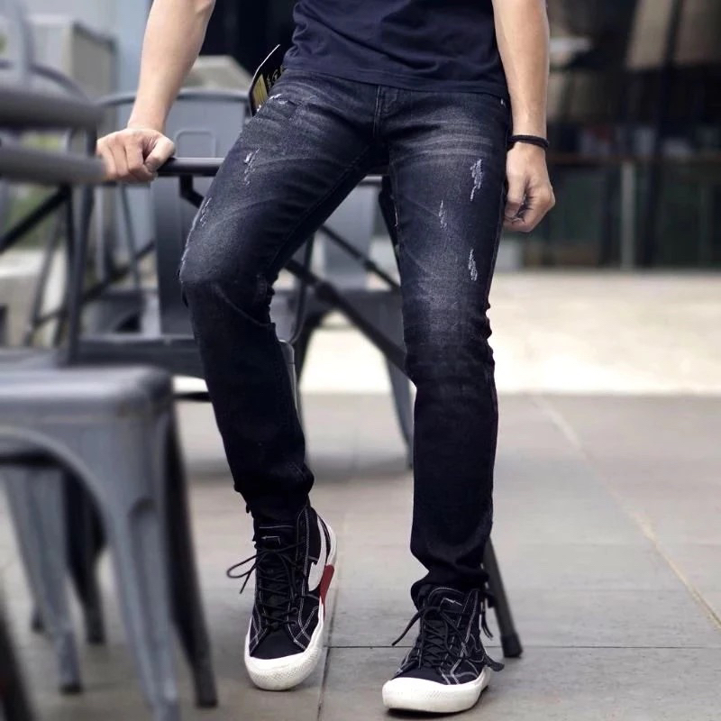 CELANA JEANS BIKERS SOBEK LAPIS BLACK SANDWASH WISKER CELANA JEANS SOBEK PRIA