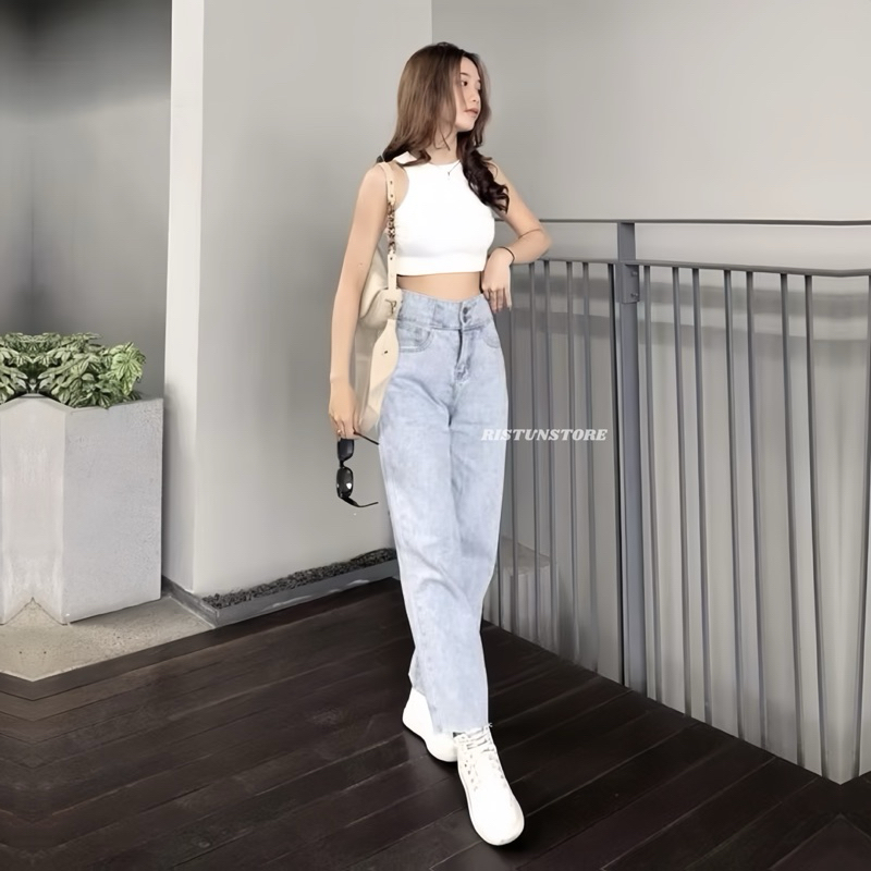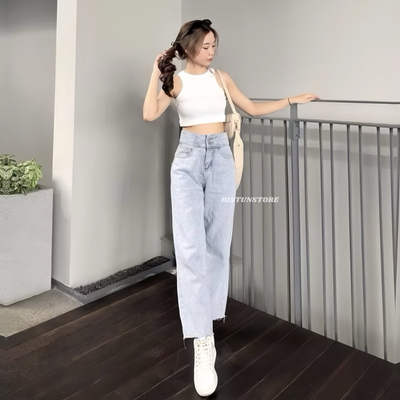 Celana Jeans Wanita Korean Style - High Loose Jeans - Celana Jeans Panjang Wanita