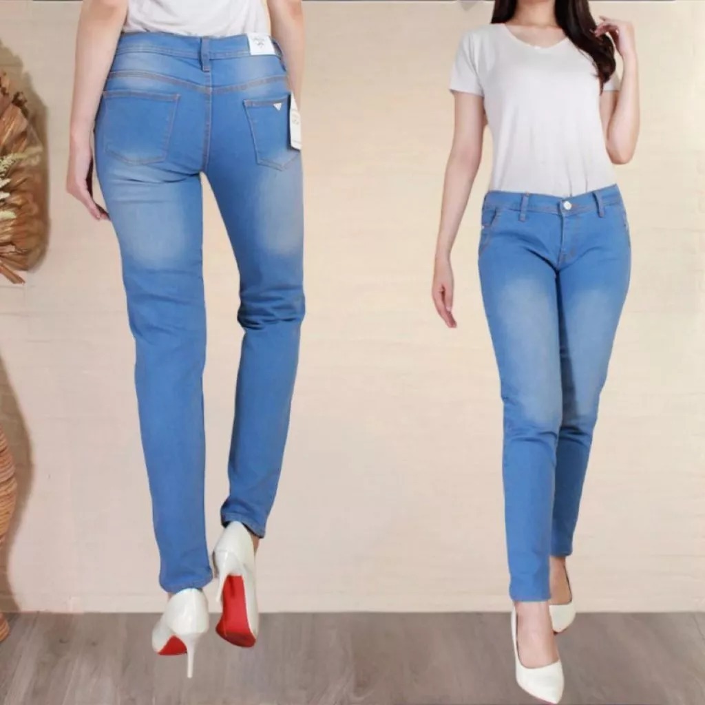 Celana Pensil Cewek Prada Slimfit Jins Hitam/Es Blu