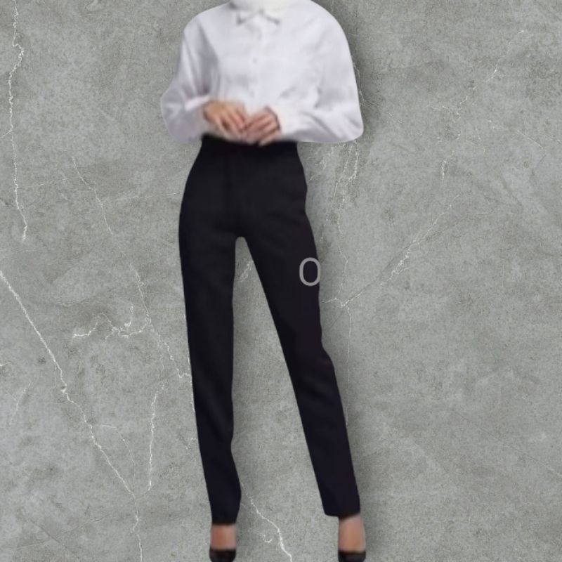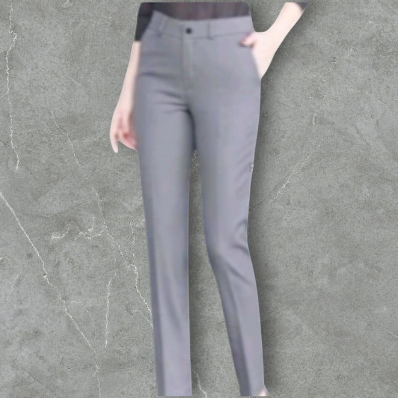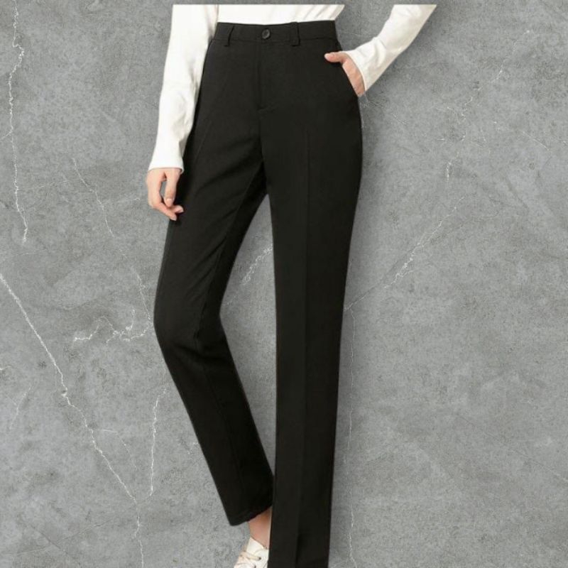 Celana Kerja Formal Kantor Hitam Pinggang Kancing Resleting Wanita