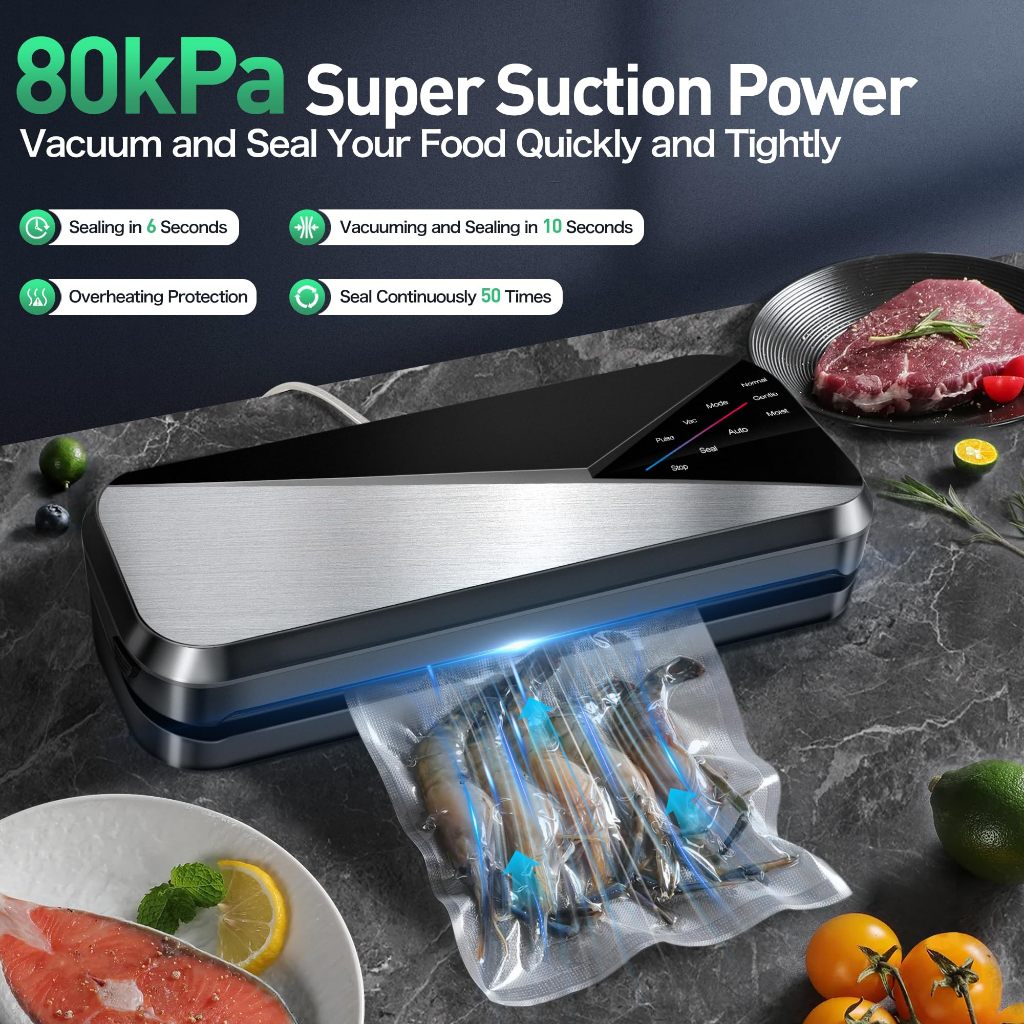 UNIG Vacuum Sealer Makanan Layar Sentuh Basah Dan Kering Fresh Food Vacuum Alat Press Serbaguna Vakum Makanan Free Plastik 10 Pcs